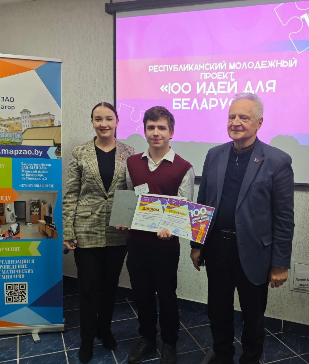 16 декабря учащийся учреждения образования "Минский государственный областной лицей" Барнатович Даниил принял участие в зональном отборочном туре республиканского молодежного проекта "100 идей для Беларуси", который проходил на базе бизнес-инкубатора ЗАО "МАП ЗАО".