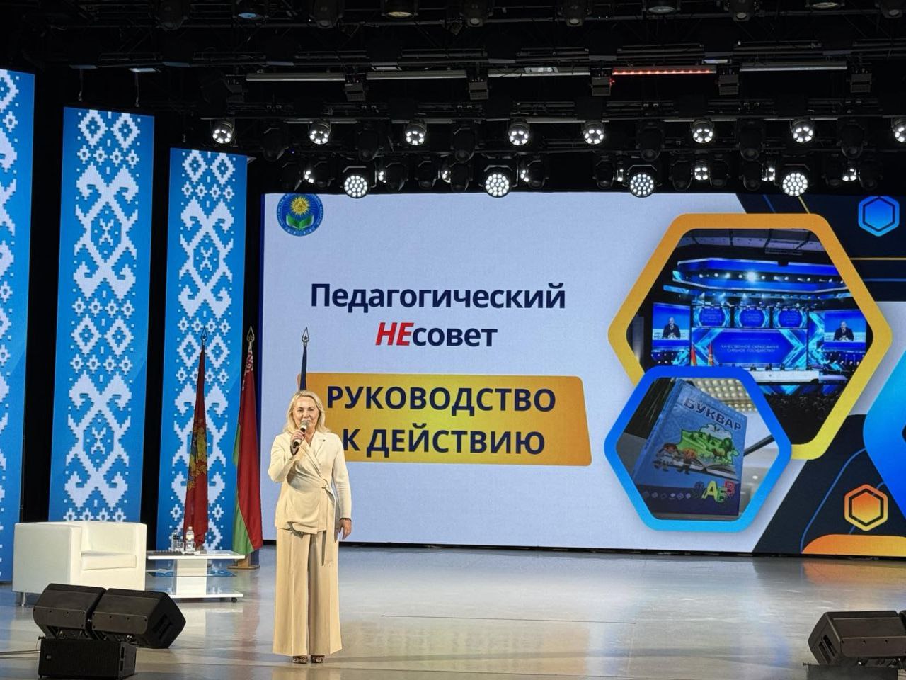 Екатерина Александровна Петруцкая в доступной форме диалога обсудила с участниками (600 представителей педагогической общественности из всех регионов Минской области, которые реализуют задачи по воспитанию детей и молодежи в школах) важные основополагающие вещи, без которых невозможно выстроить систему идеологической и воспитательной работы.