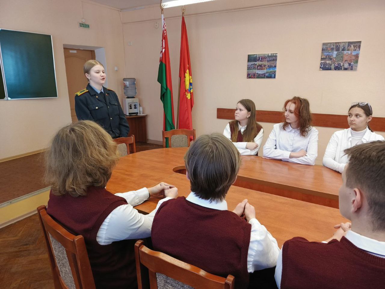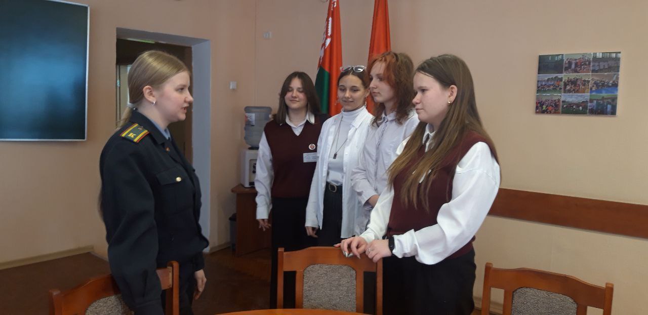 2 февраля в рамках профориентационного проекта "PRO-успех" курсант 2 курса Могилёвского института МВД, выпускница 2024 года учреждения образования "Минский государственный областной лицей", Сенькевич Вероника встретилась с учащимися 10 "Ж" класса обществоведческого профиля.