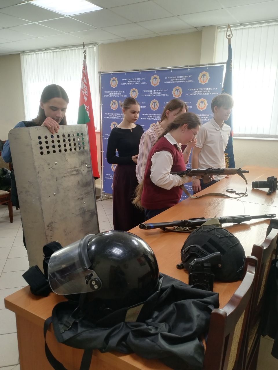 При посещении отдела лицеисты примерили амуницию, изучили оружие правоохранительных органов