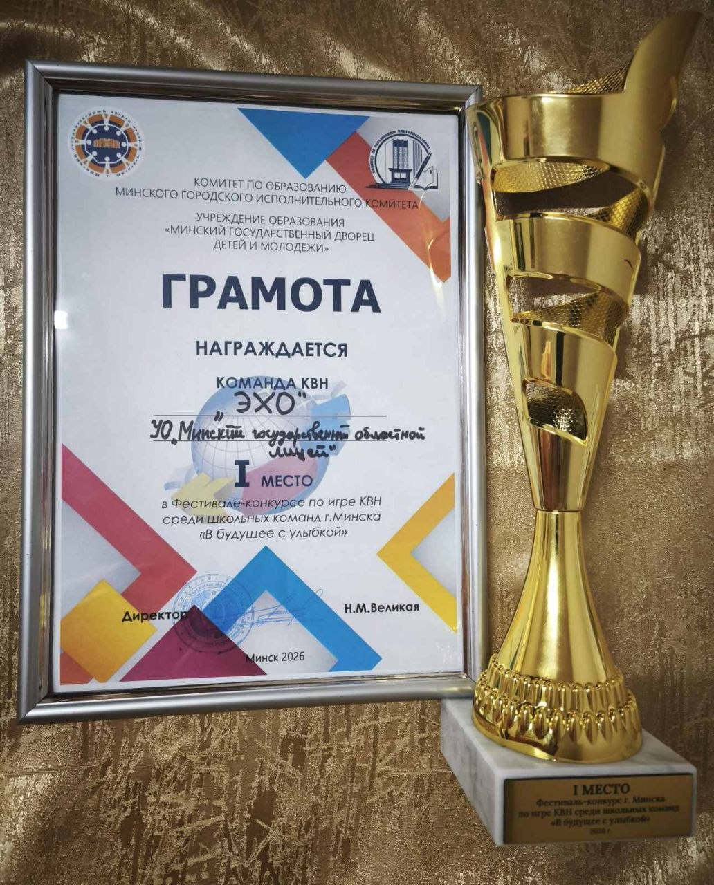 Команда КВН "ЭХО" УО "Минский государственный областной лицей" одержала победу в Фестивале-конкурсе по игре КВН среди школьных команд "В будущее с улыбкой".