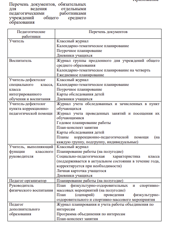 • Перечень документов, обязательных для ведения отдельными педагогическими работниками