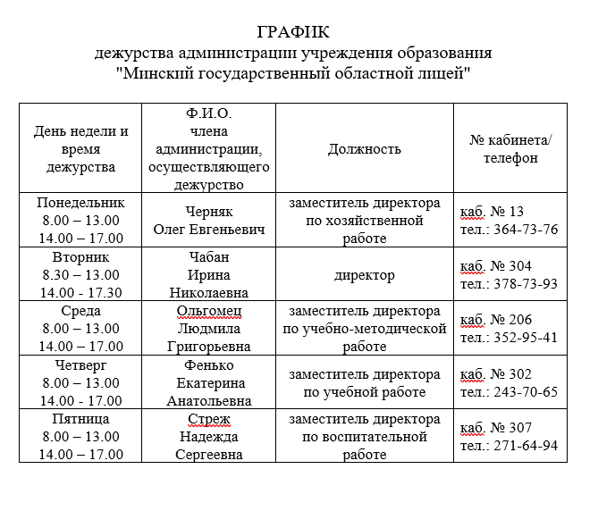 • График приёма граждан с заявлениями об осуществлении административных процедур