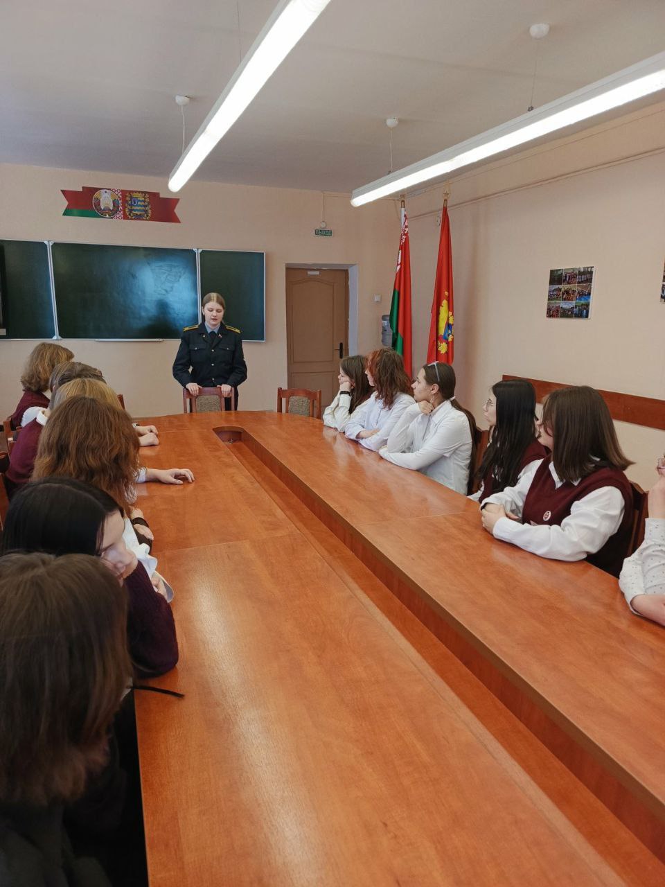 2 февраля в рамках профориентационного проекта "PRO-успех" курсант 2 курса Могилёвского института МВД, выпускница 2024 года учреждения образования "Минский государственный областной лицей", Сенькевич Вероника встретилась с учащимися 10 "Ж" класса обществоведческого профиля.